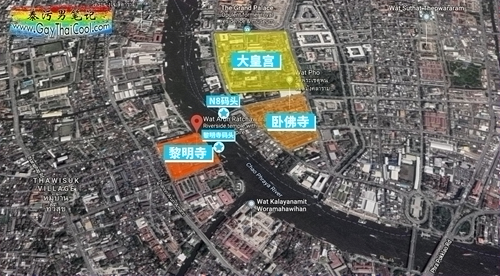 黎明寺位于湄南河的西岸的吞武里区,对岸就是大皇宫和卧佛寺。可以乘坐摆渡船到达。