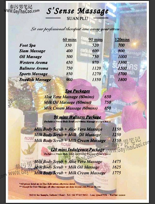 S’Sense是开张没多久的新店;是一个Massage Boy转型新开的大众服务+色情Massage;店铺的地址就坐落在Sathorn附近的Suanplu巷子里。