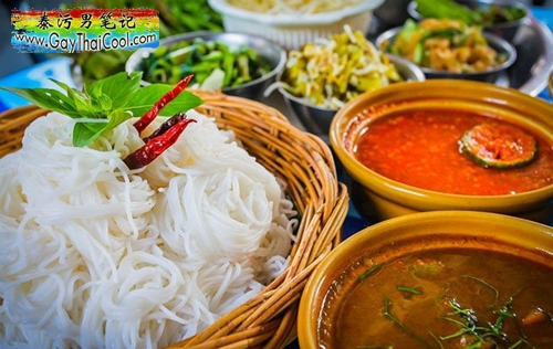 泰式米线做法极多,但以凉面陪酱料最为特别。白色素净的米线,可以配上红绿咖喱以及特殊的泰式浇头,清爽顺滑,多种口味。