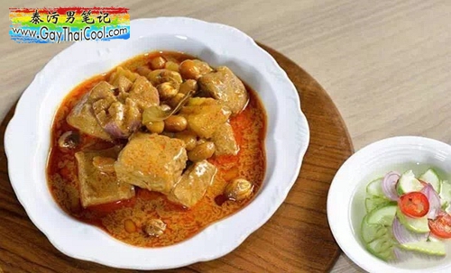 最常见的麻斯曼辣汤选用鸡肉搭配,但街头巷尾也有很多餐馆配合猪肉来做。汤味偏甜,汤内加有豆子的清香味,是一道正宗的泰国南部佳肴!