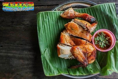 泰国的烤鸡一般配上糯米饭、木瓜丝沙拉搭配食用,这是泰国家喻户晓的一道名菜。在东北部的烤鸡有各种不同的配方,其中,泰国最有名的要属孔敬府和碧差汶府的特色烤鸡,浓郁且口味刺激,皮酥肉嫩多汁,豪放吃法的烤鸡很有满满的泰“东北”风味。将烤好的鸡肉摆在盘子里,旁边配上店家特调的两种酱汁和一些配菜,并搭配蒸糯米饭或青木瓜沙拉吃。“泰好吃”的节奏挑逗着你味蕾的每一根神经。