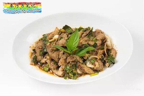 这是一道非常开胃的泰餐。用柠檬汁,加上青辣椒、配上香菜、薄荷叶,与烹煮好的猪肉放在一起凉拌。口味酸辣,肉质嫩滑。 小编非常喜欢点这道菜,但泰国餐馆分量一般都会很小,胃口大的小主们可以Double哦~