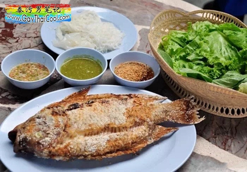泰式烤鱼是最常见的路边美食。这种烤鱼一般都是选用罗非鱼,不去鳞片,裹上厚重的海盐,在鱼肚中塞上各种香料,然后放在炭炉上炙烤,直到外皮干脆,即可食用。