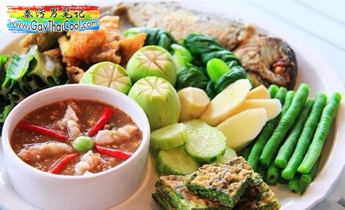 这是道很奇怪的泰国菜,听小编泰国的好基友的介绍,这主要是泰北的开胃头盘。以口味偏辣的蘸酱,配上各种蔬菜和鸡蛋饼,还有一两条油炸海鱼,在开席前配上啤酒,泰国人会吃的津津有味。