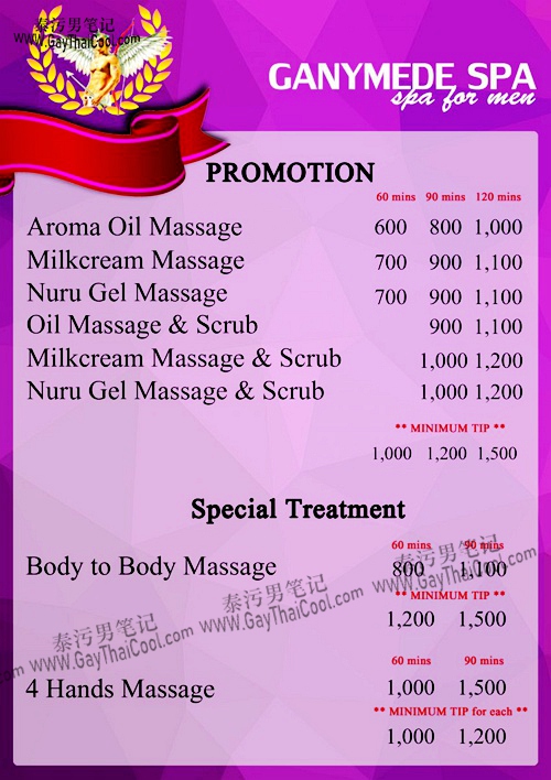按摩的价格基本比Prince、vClub等稍便宜一些。仔仔要求的最低小费似乎也要便宜500泰铢左右。如果需要特殊服务,要点「Body to Body」的套餐。