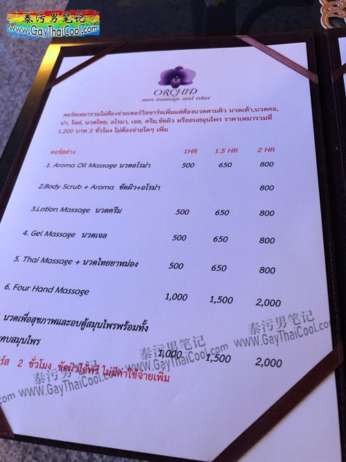 Orchid服务价格比较实惠,基础按摩500-800泰铢,小费1000-2000泰铢。