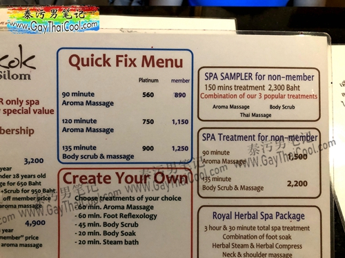 再来看Silom Plaza的Bangkok Spa,位于一楼西侧的尽头。相比于The Best Massage,则更多主打“会员制”以及“高品质”按摩。Bangkok Spa,在曼谷有很多连锁店,装修风格精良,不少名媛在Bangkok Spa都有兼职。