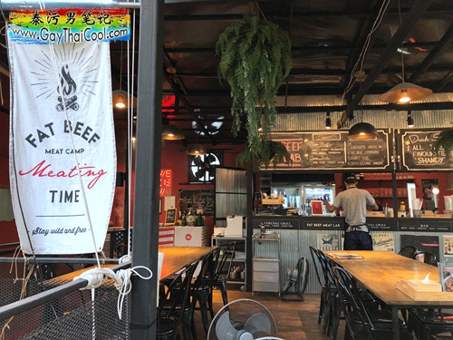 晚上随便找了家餐馆:Fat Beef,很奇怪的料理方式。店家将牛肉烤至Rare,然后切片成条,放在玻璃圆板上加明火煎烤。店铺是没有空调的露天位置,很适合谈一些私密的事儿。