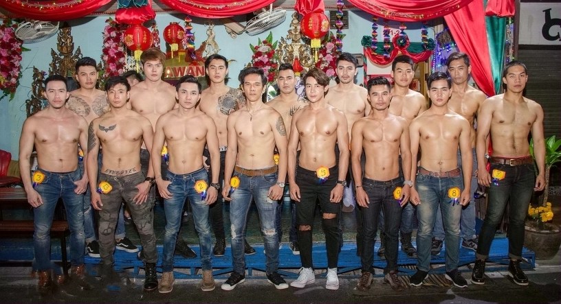 对于小编而言,Tawan实在不对口味。这里主要是中年(超大块头直男)肌肉男。虽然本文的头图用的是Tawan周年庆合照,但实际上每夜表演的仔仔都是年纪40左右,肌肉超级大块的直男仔仔。