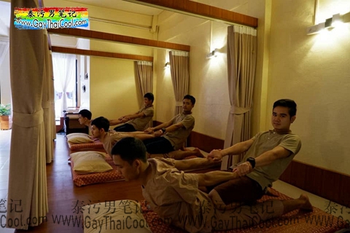 U-Sabai Massage驻店仔仔十几人,最热闹的时候便是在夜幕降临之际。很多周边下班回家的基佬们也会跑来按摩一下,舒缓全天的疲劳。