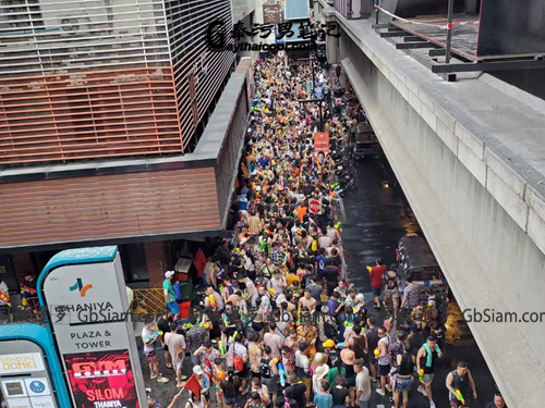 毋庸置疑,泼水节期间,论地域,同志(Gay)泼水的主战场显然还是Silom;只不过在2023年比较可惜,曼谷市政府没有将Silom进行封路,所以整个可以参与泼水的区域被限制到了Silom路两侧的人行横道上。在快车道的外围,用铁质临时栏杆进行了围挡,而加水点也是全部限制在人行横道内侧进行补给。