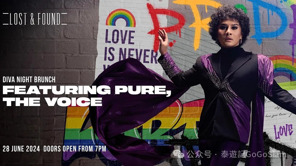 6月同志骄傲月,Lost & Found夜店也大张旗鼓,策划在2024年6月28日(周五)组织同志骄傲月特别活动。晚上7:00开始营业,9:30PM开始各类精选男模表演及走秀节目。10:30PM还有Drag Queen的表演环节。300泰铢的入场费(含1杯酒水),晚餐套餐价格1250泰铢/人。