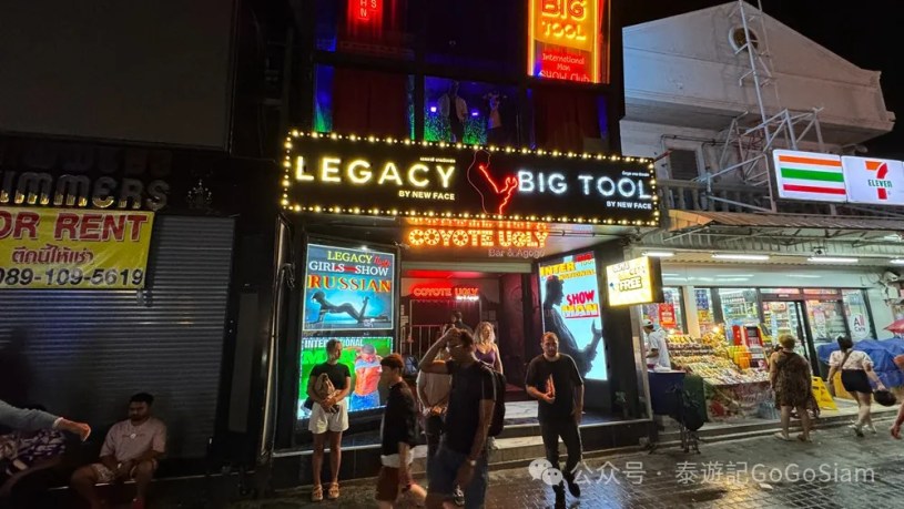 新开的步行街新开的『欧美猛男秀』就在Walking Street海滨一路入口一侧,大概200米距离,便可看到这家名为Legacy Big Tools的欧美猛男夜店。抬头看去,三五个非洲壮汉、欧美肌肉男正是站在窗前绕首弄姿、暗送秋波。